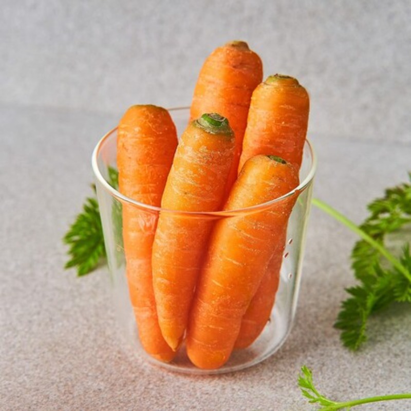 당근에는 우리 몸에서 비타민A로 작용하는 베타카로틴이 풍부하게 들어 있어요. 시력을 좋게하고 성장과 발달을 도와주며 면역력을 높인데요. 그리고 우리 몸에서 지방과 단백질의 대사를 도와주는 비타민B의 한 종류인 비오텐을 들어 있고 혈액 응고와 뼈 건강에 중요한 비타민K1이 포함되어 있으며 당근에는 혈압 조절에 관련된 칼륨 또한 풍부하게 들어있어요.당근에는 카로티노이드라고 불리는 항산화 성분이 풍부하게 들어있어요. 이 성분은 우리 몸에서 면역력을 높이고 각가지 질병에 대응해요.